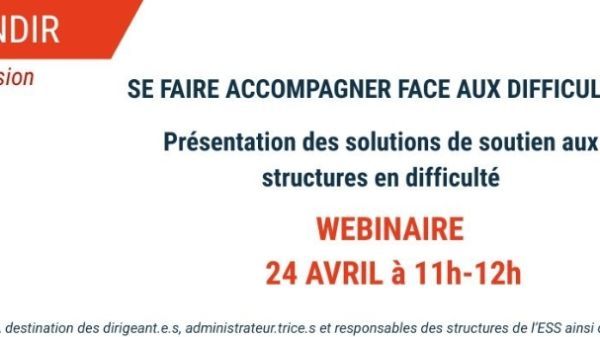 Votre structure rencontre des difficultés ? Vous faites de l'accompagnement de structures de l'ESS en difficulté et souhaitez en savoir plus sur les dispositifs existants ? Inscrivez-vous à ce webinaire pour découvrir les solutions existantes.